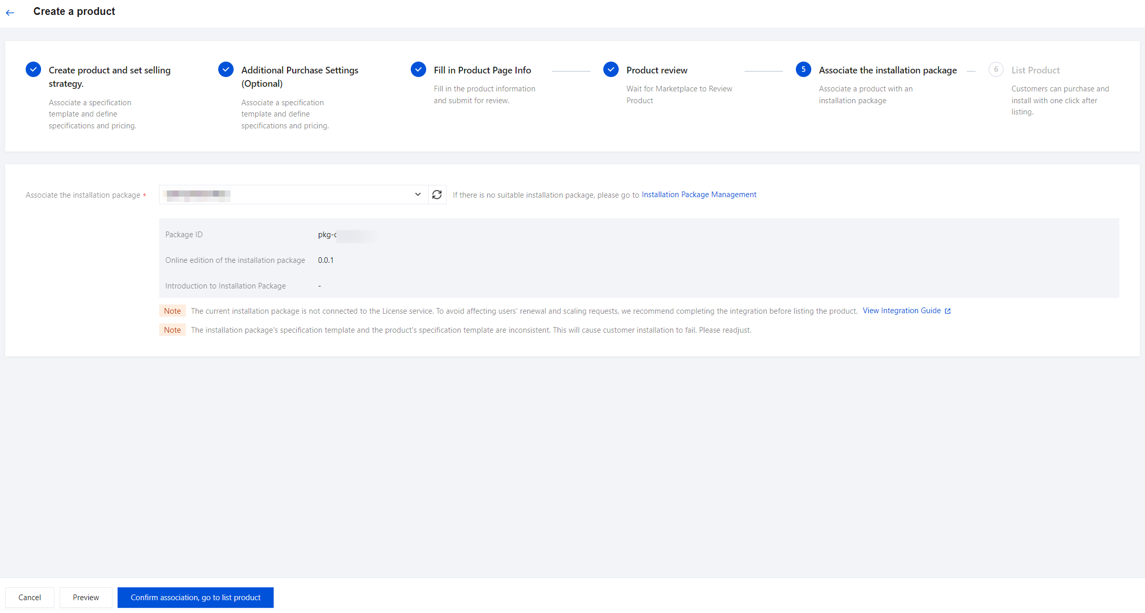 Replace installation package | The product has been associated with an installation package. | After clicking, the currently associated installation package of the product will be displayed; you may switch to any released installation package. |