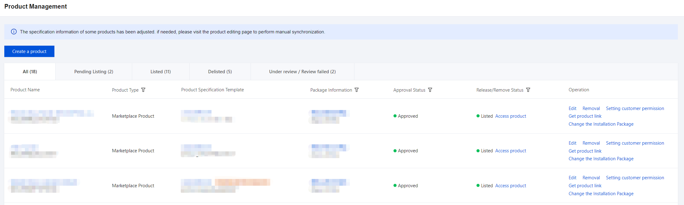 List | The product is approved and associated with an installation package. | After being listed, the product becomes accessible in the app store, and customers can place orders and install it. |