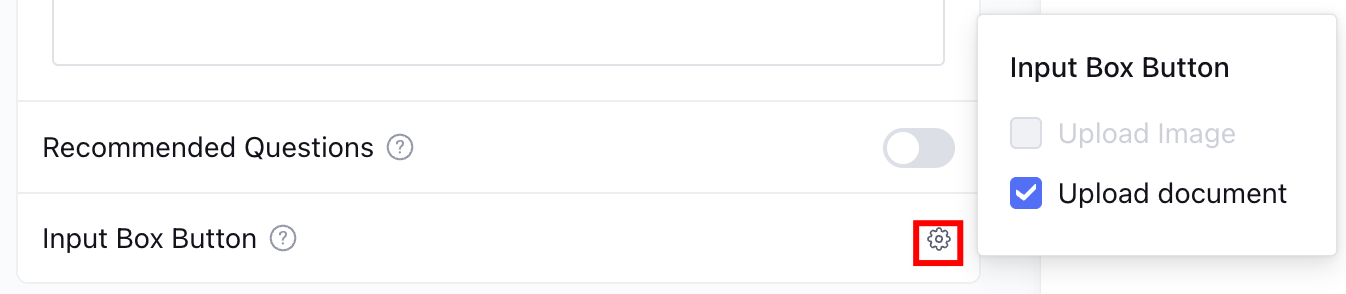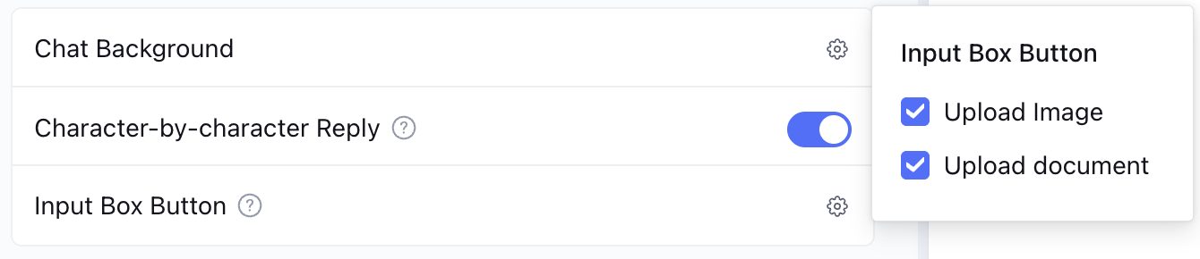 Support configuring feature buttons shown in the chat input box, options including image upload and upload documents. Among them, only the upload documents button is supported in standard mode; in Multi-Agent Mode, both image upload and upload documents buttons are simultaneously supported.