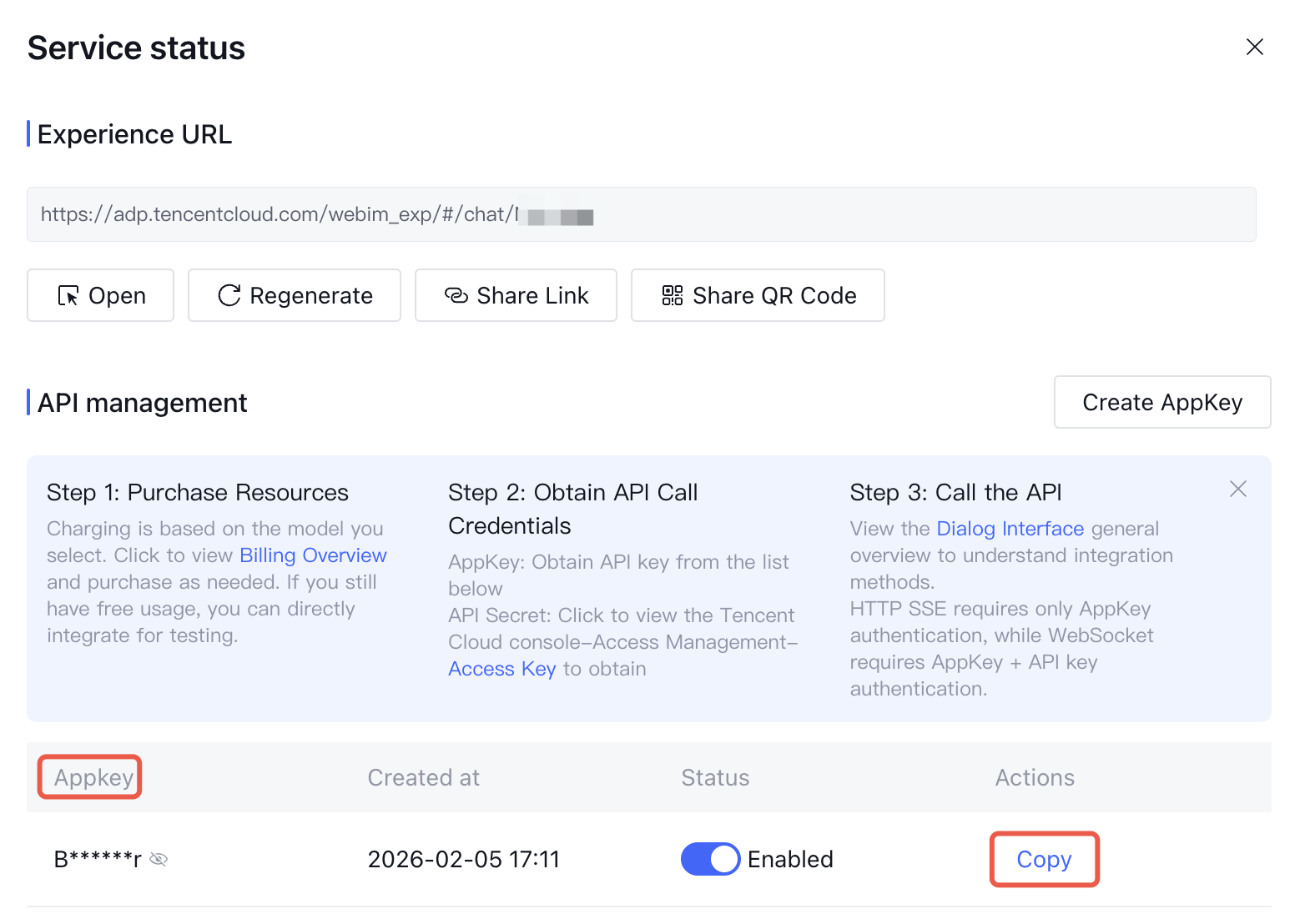 session_id | string(64) | Yes | Conversation ID, used to identify a session (provided by an external system, it is advisable for different client sessions to import different session_id, otherwise messages from different users within the same application may get mixed up). Parameter Length: 2 to 64 characters Verification rule: ^[a-zA-Z0-9_-]{2,64}$. Normally, uuid can be used to generate this value. uuid example: 1b9c0b03-dc83-47ac-8394-b366e3ea67ef |