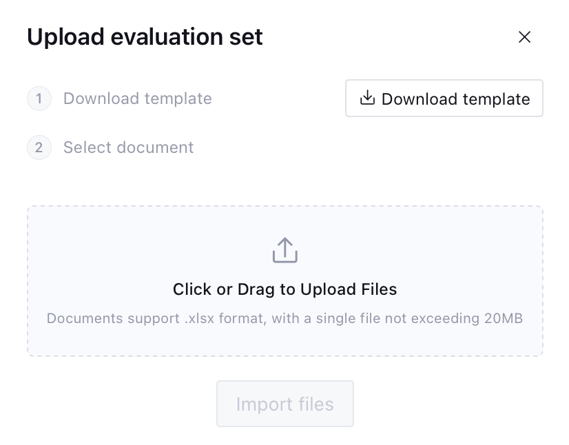 2. Click to upload Evaluation Set, a pop-up window will pop up. Please refer to the upload template to build the evaluation set file.