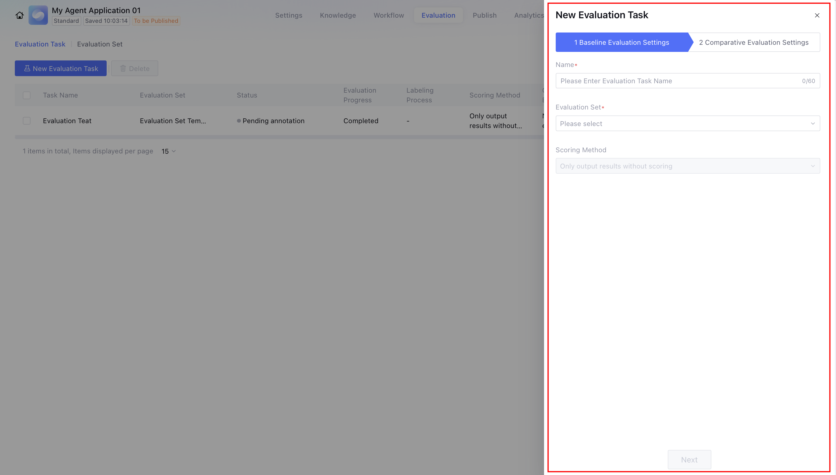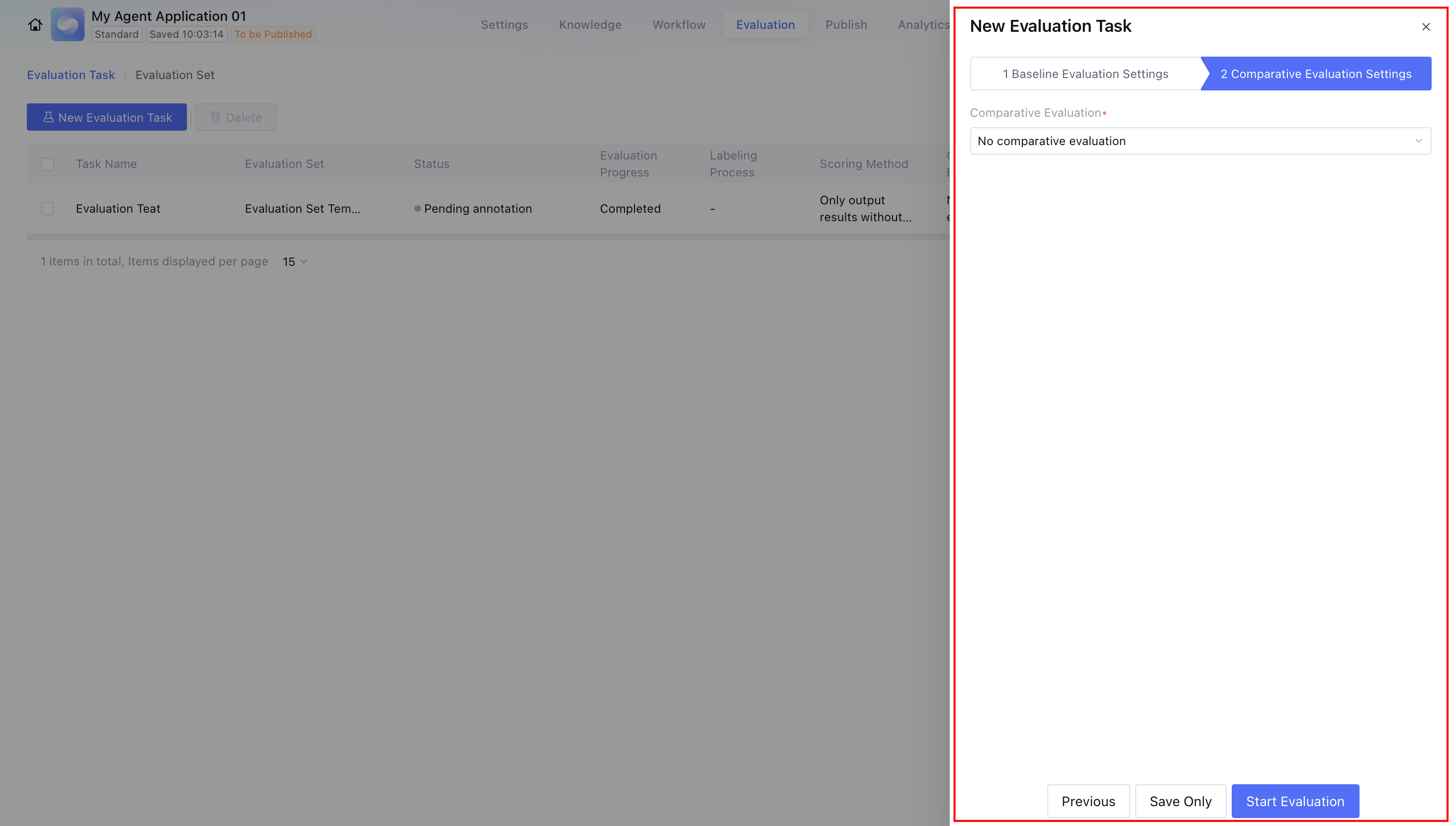 Through application evaluation, users can continuously optimize the performance and experience of Intelligent Agent applications.