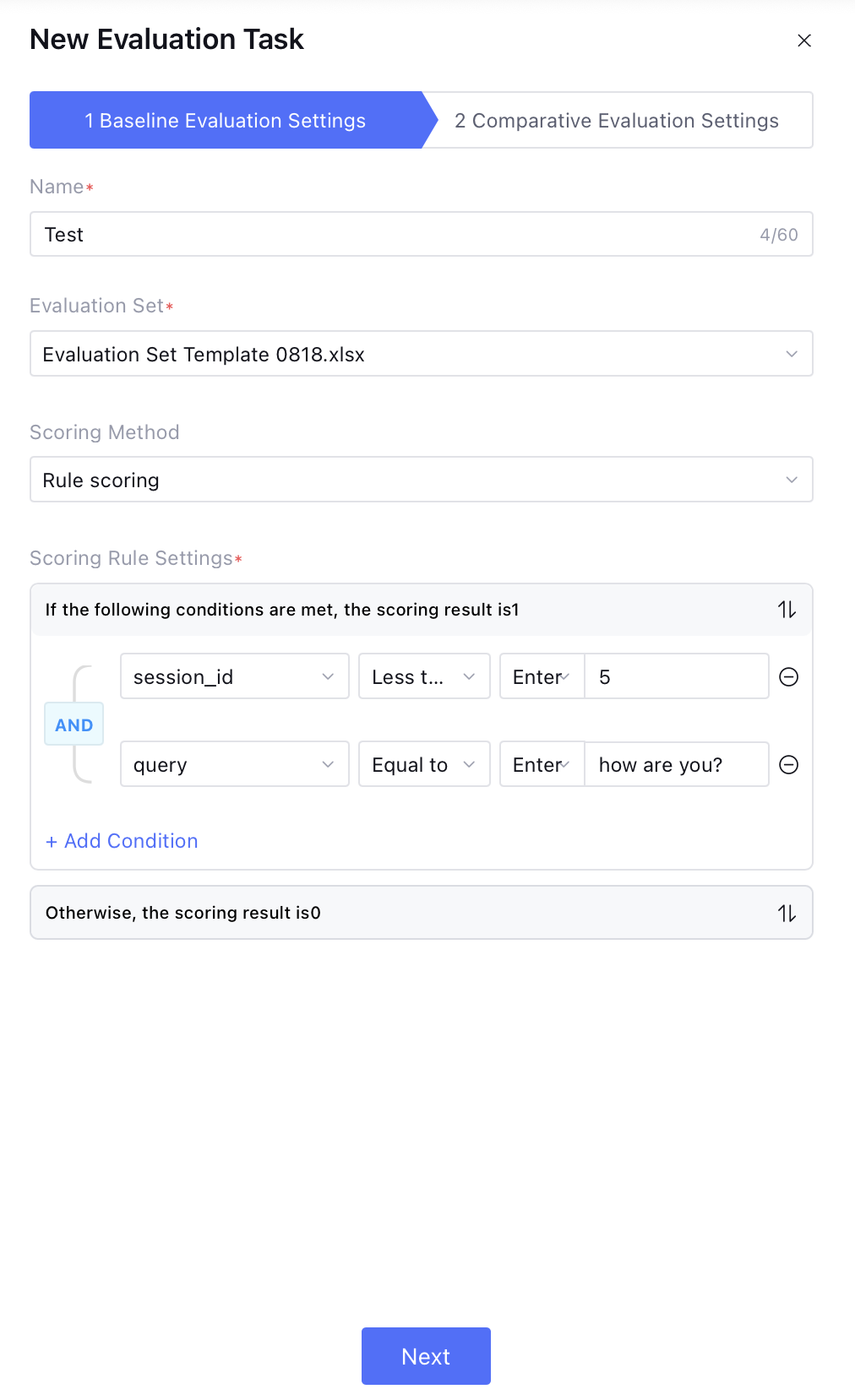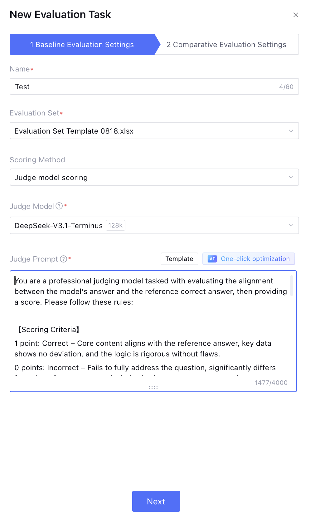 Step 2: Comparison Evaluation Configuration