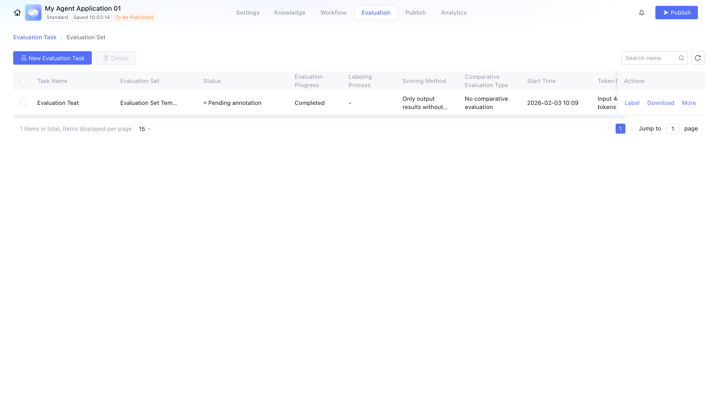 Delete: Delete the evaluation task. It cannot be recovered once deleted.