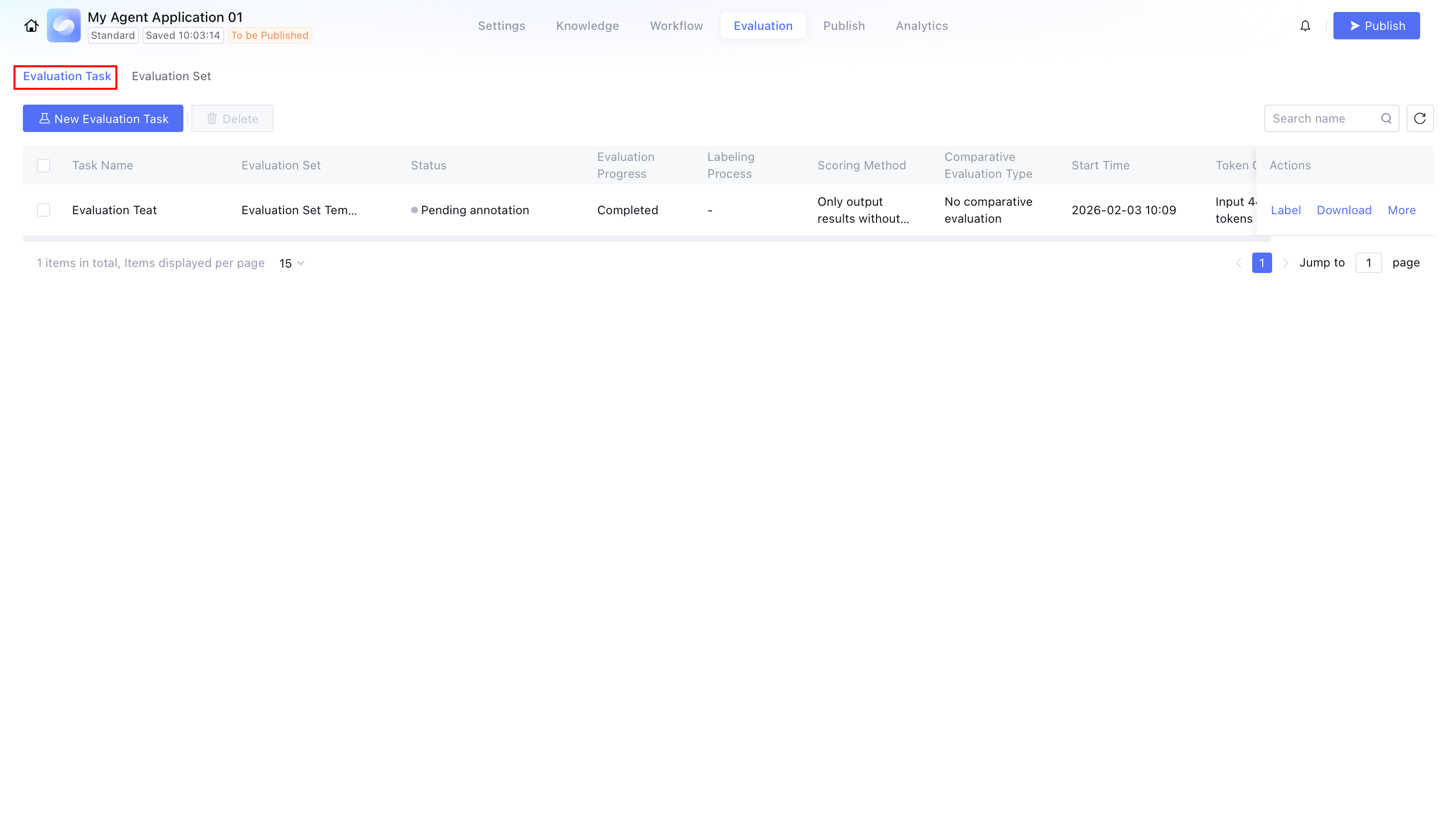 Evaluation task is the core component of application evaluation. It supports user selection of different evaluation methods to start the task and manage the process.