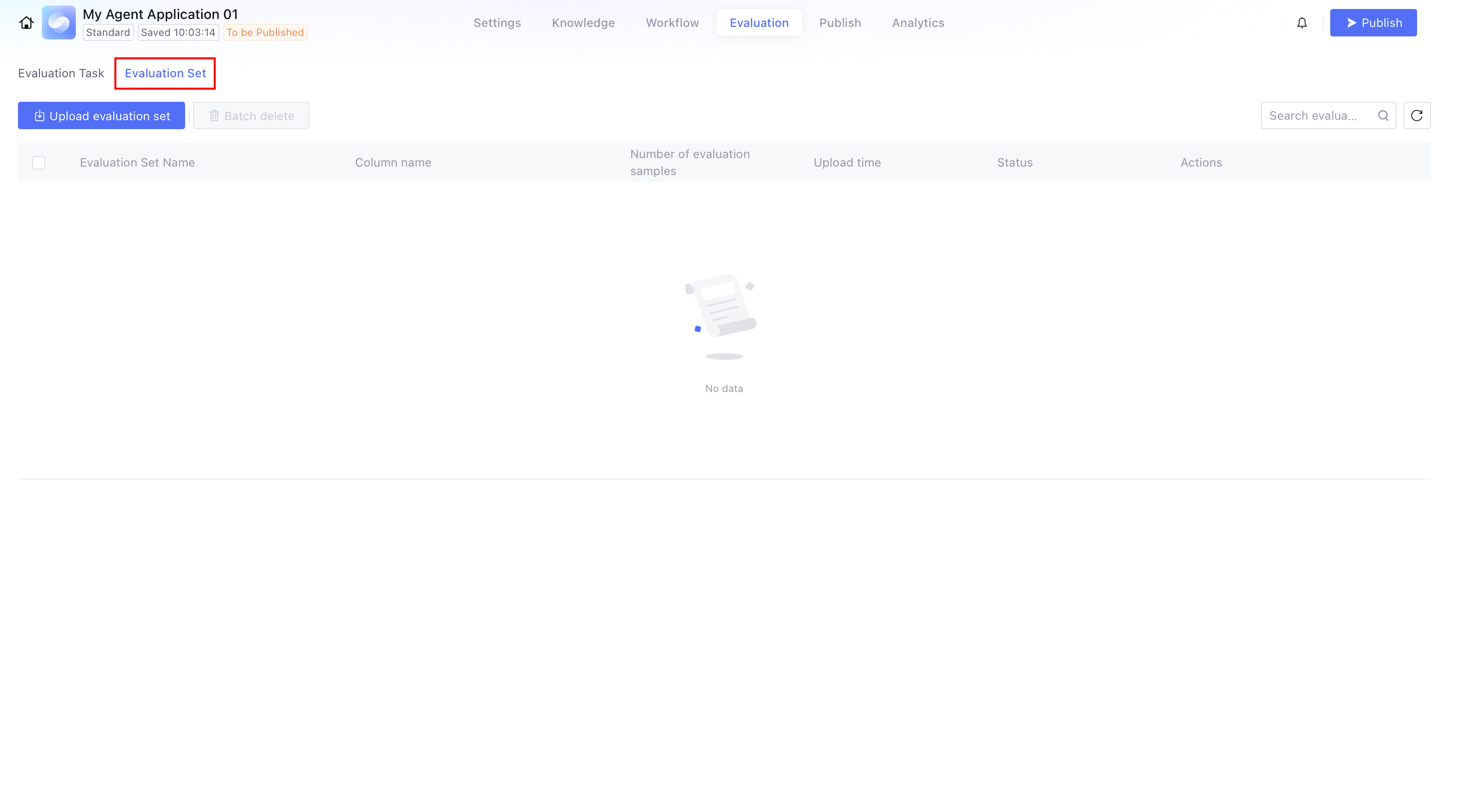 1. Click Evaluation Set to enter the evaluation set management page.