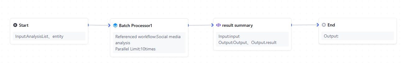 Difference Between Batch Processor Node and Loop Node: Loop Node processes array elements serially, executes the loop body workflow in sequence, and allows conditional judgment on each loop execution result to achieve early termination. Batch Processing Node processes array elements in parallel batches without early termination, suitable for parallel processing scenarios with large amounts of data, such as parallel analysis of media articles and data preprocessing.