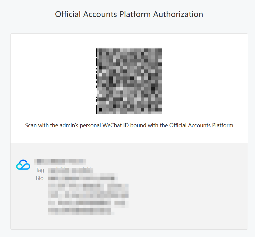 3. Navigate to the official account platform authorization webpage, scan the QR code with the bound administrator's personal WeChat.