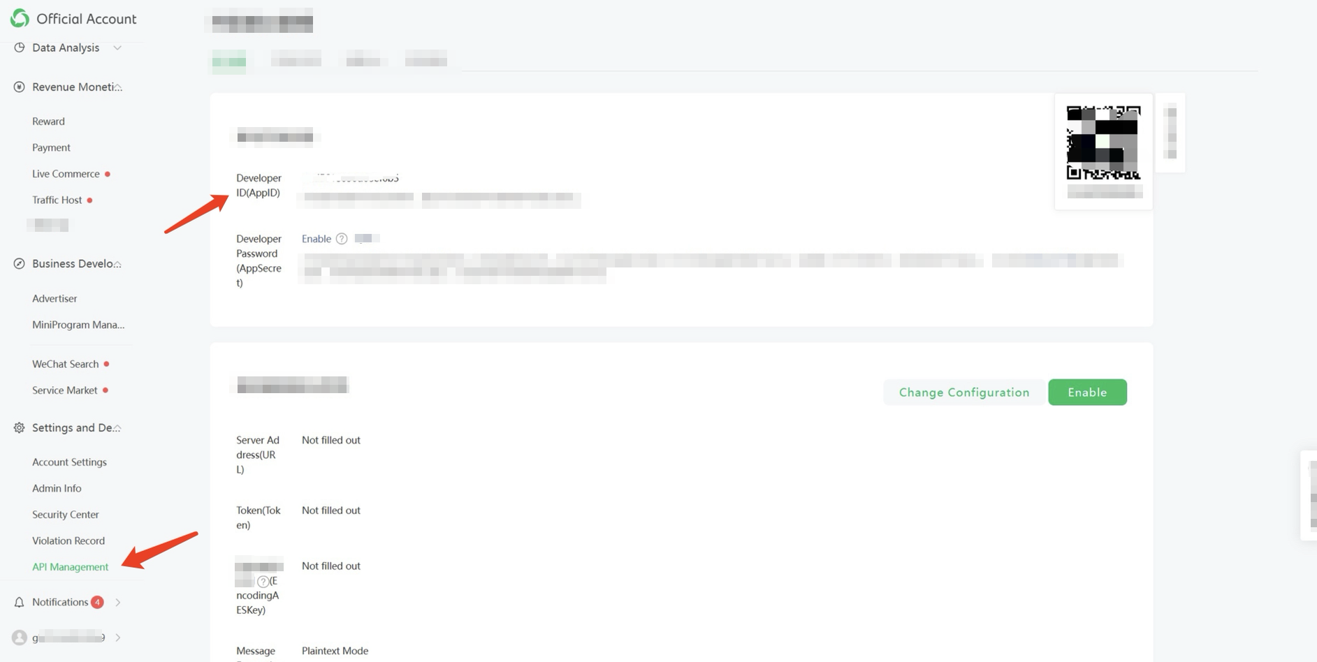 2. On the settings and development > API management > basic configuration page, copy the Developer ID (AppID).