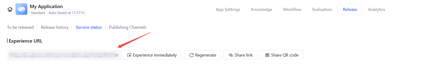 1. Enter Tencent Cloud Agent Development Platform (Tencent Cloud ADP) > Application Release > Service Status > Experience Link.