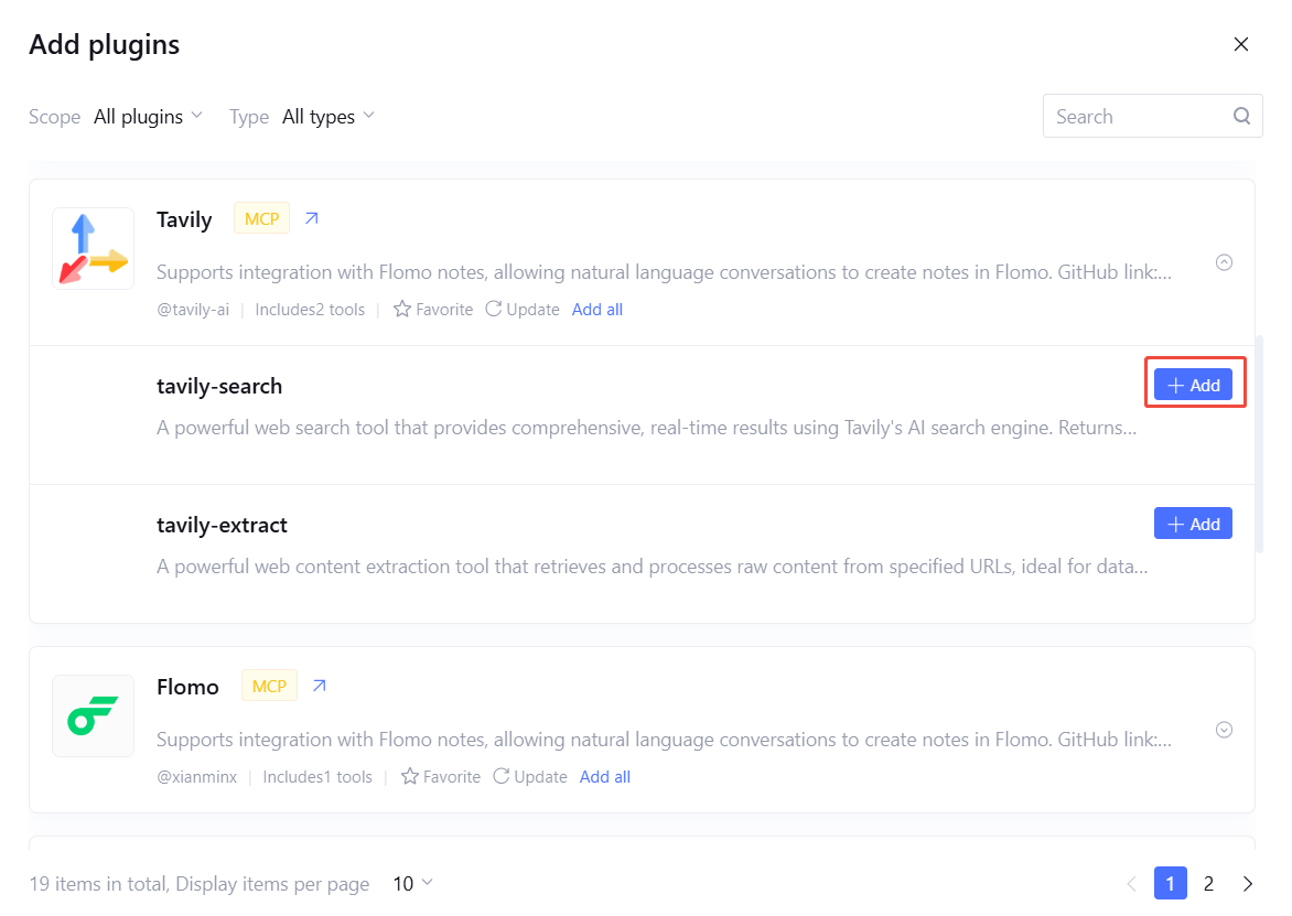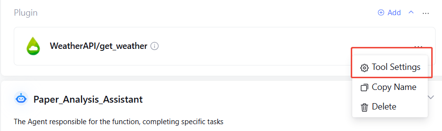 Tool support for configuring parameters. After adding a plugin, click Tool Settings.