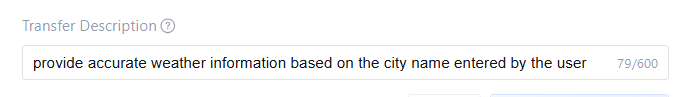 If configuring a single Agent usage scenario, you can simply fill in the transfer description. But in multi-Agent collaboration scenarios, clear descriptions are critical for correct transfer.