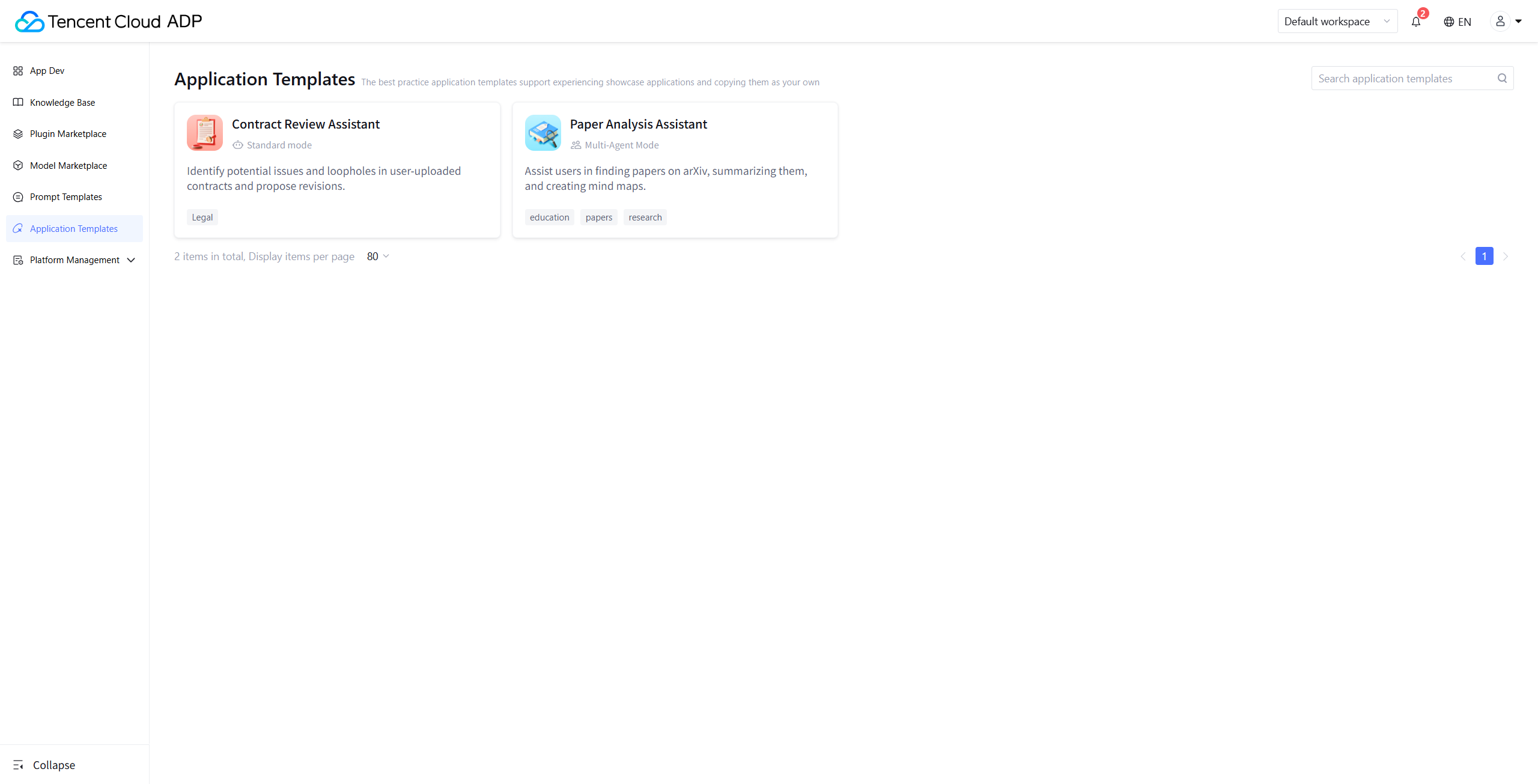 Application Template is a predefined best practice application built by the Intelligent Agent development platform to help users get started quickly and experience application creation. Its main purpose includes: