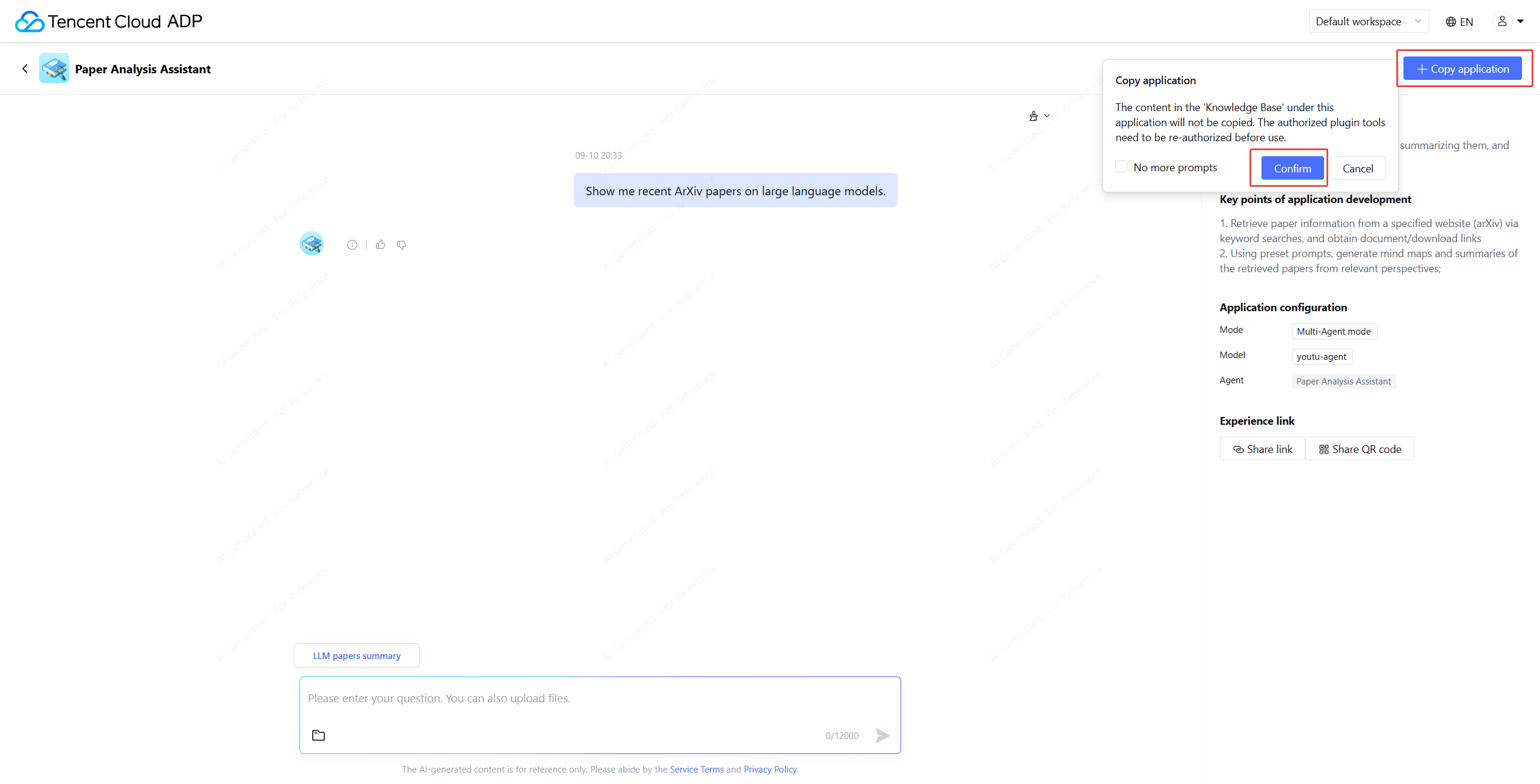 The content in the "knowledge base" under the application will not be copied. Authorized plug-in tools must be reauthorized before usage.