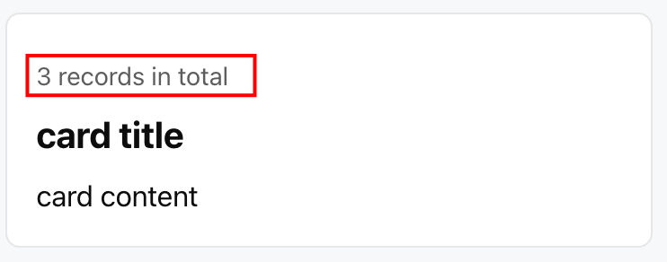 <Card status={{ text: "3 records in total" }}><Title value="card title" /><Text value="card content" /></Card>