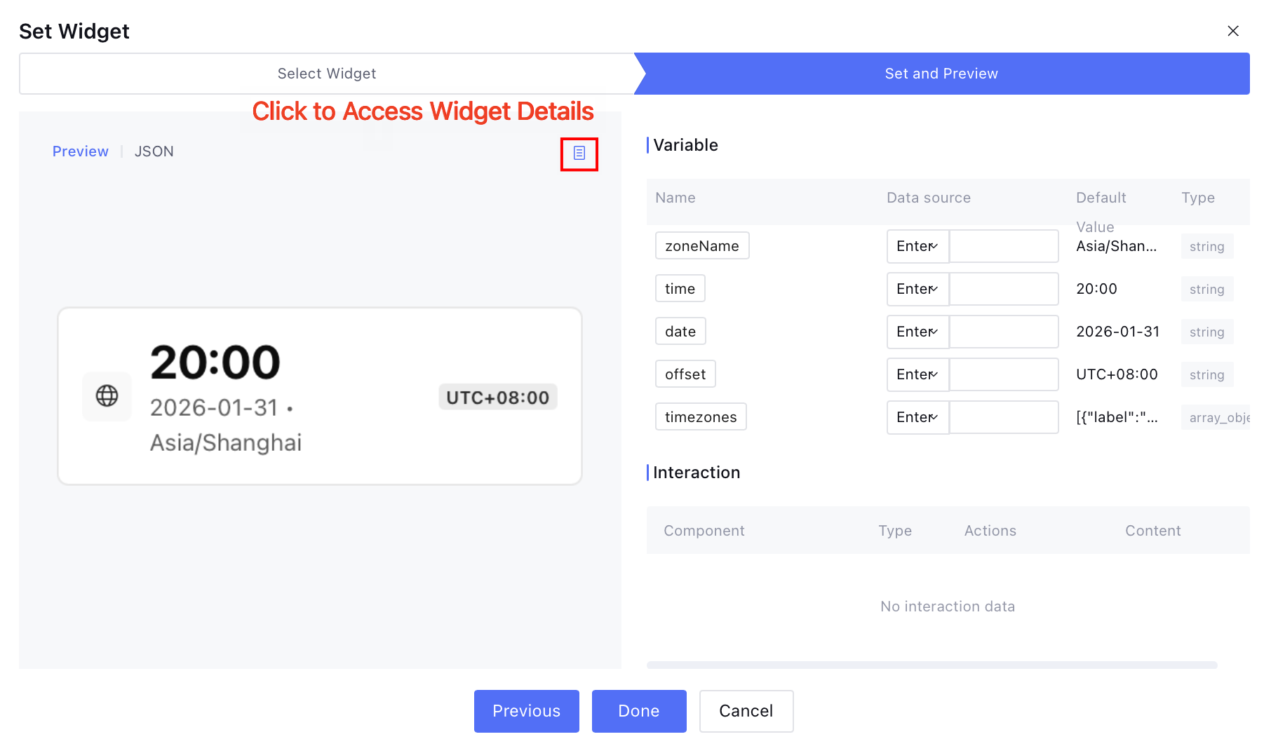 Click to preview the icon and enter the Widget details page to customize.