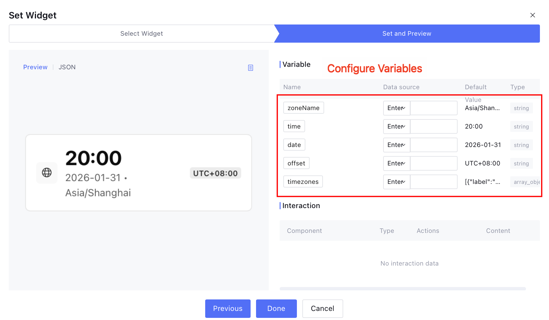 Enter the data source for variables. You can choose to manually enter or refer to them. Support for references includes tool parameter variables and application-level variables. Click Done to directly use the current Widget.