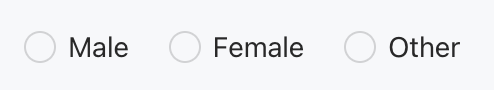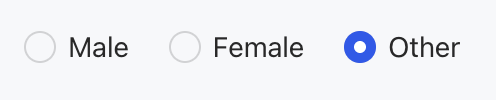 <RadioGroupname="gender"options={[{ label: "Male", value: "male" },{ label: "Female", value: "female" },{ label: "Other", value: "other" }]}/>