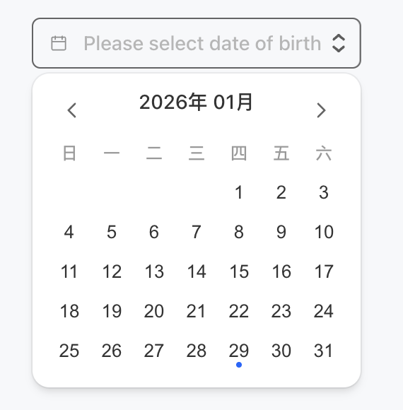 <DatePicker name="birthday" placeholder="Please select date of birth" />