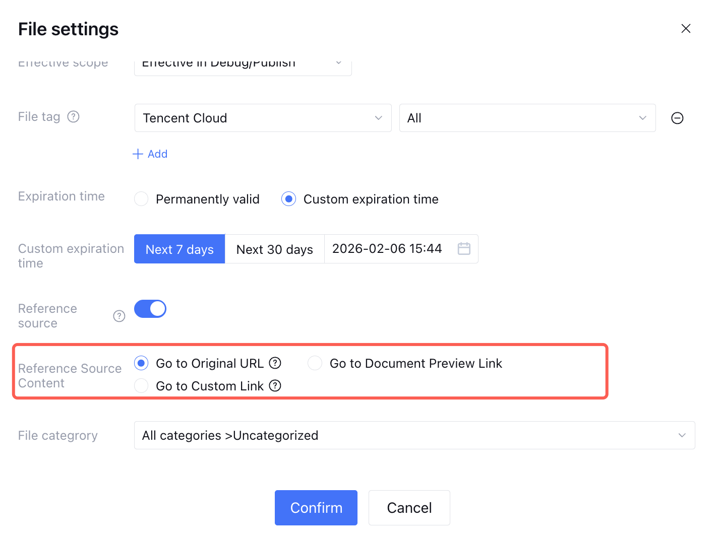 Go to Custom Link: Clicking the reference will redirect to an external link you configure, such as an official site or internal system.