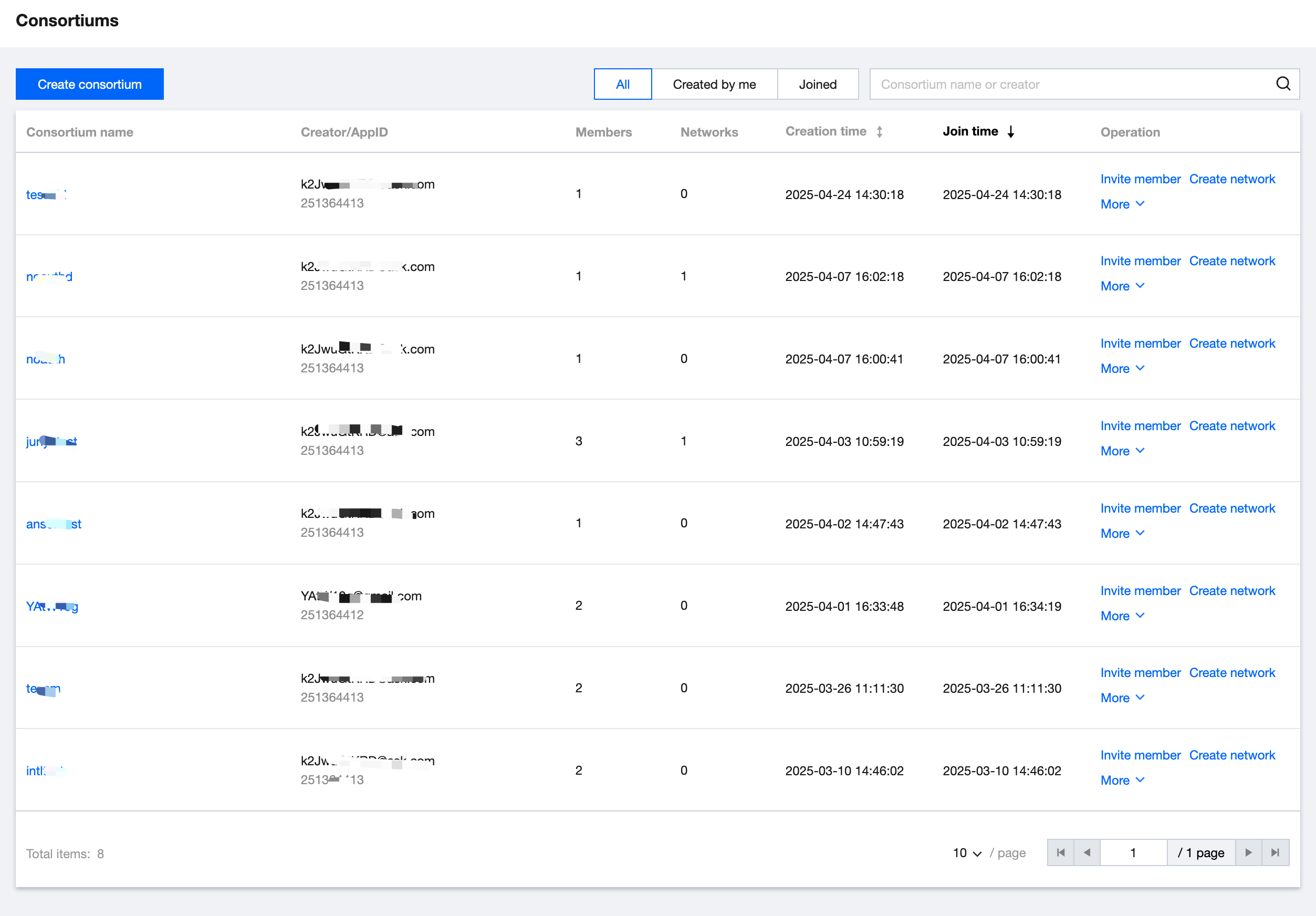 1. Click consortium in the left sidebar to enter the consortium list page. As shown below: