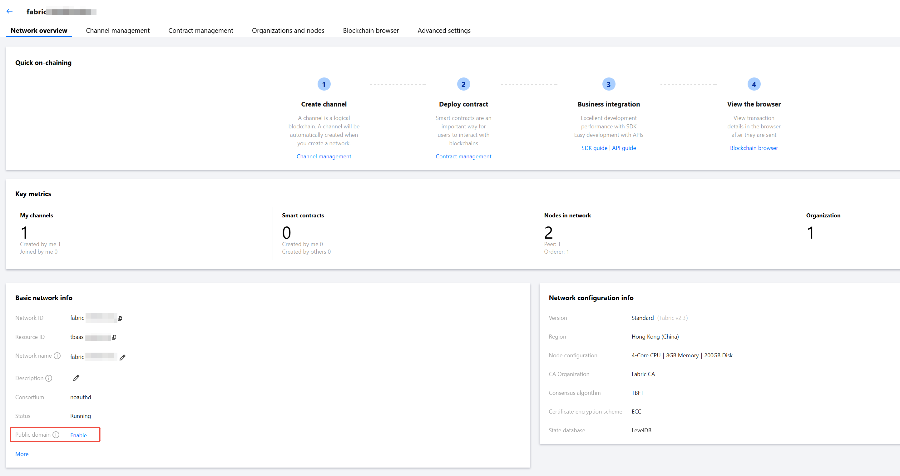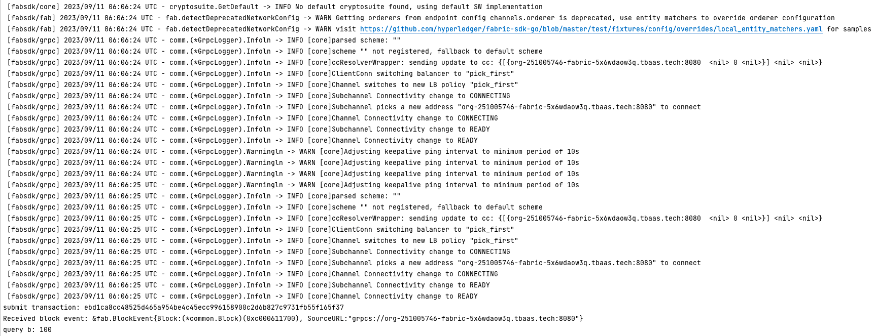 const (configFile = "config/config.yaml"// Organization MSPIDmspId = "org-251005746.fabric-5x6wdaow3q"// userNameusername = "test"// Channel namechannelName = "channel-9xjcb2"// contract namecontractName = "gotest")