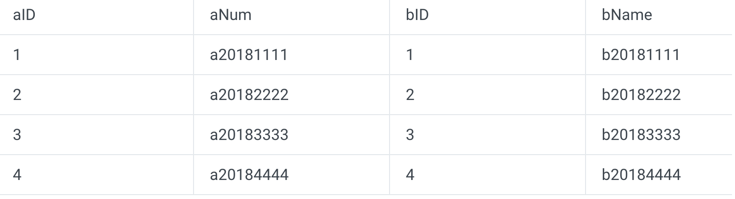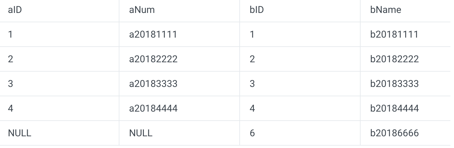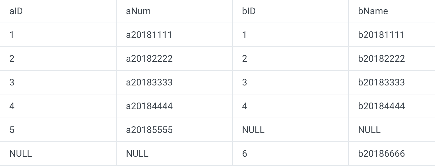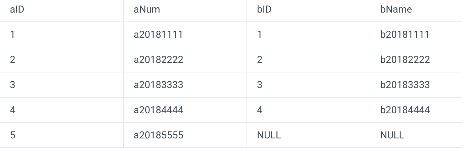 Here, only records where A.aID=B.bID are displayed. This indicates that an inner join is not based on either table but only displays the records that meet specified conditions.