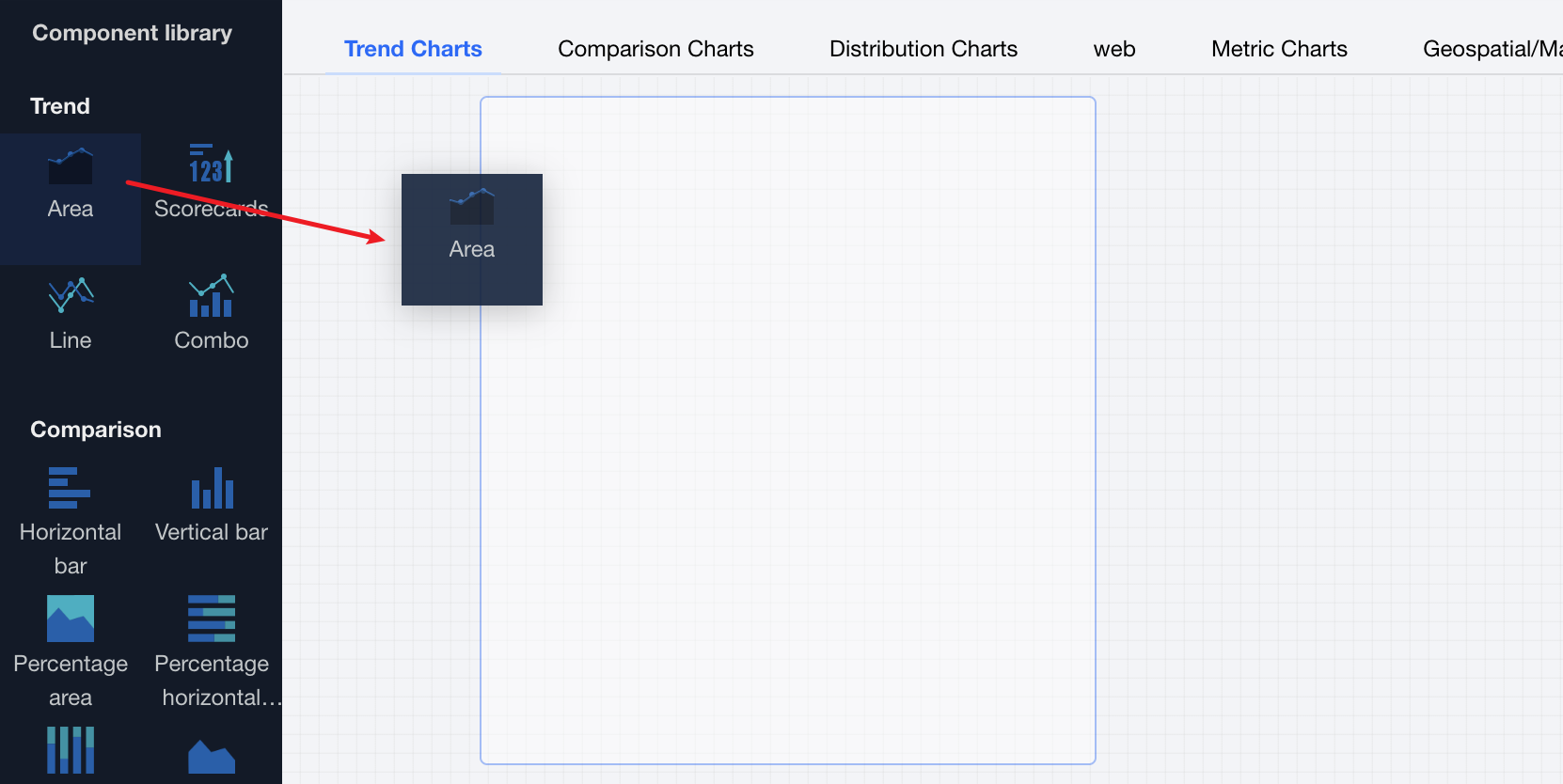 1. Create a chart: Drag and drop a chart component into the canvas.