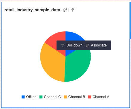 Click the specified dimension area in the chart to drill down into the dimension. For example, click a certain dimension value to drill down into corresponding sub-dimension data. Click the drill-down navigation option below to drill up and return to the previous dimension.