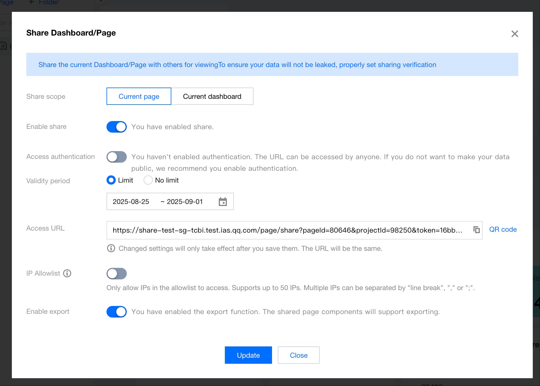 3. Users access pages through the access link. The system does not validate the viewer identity. For data security consideration, please be cautious when sharing.