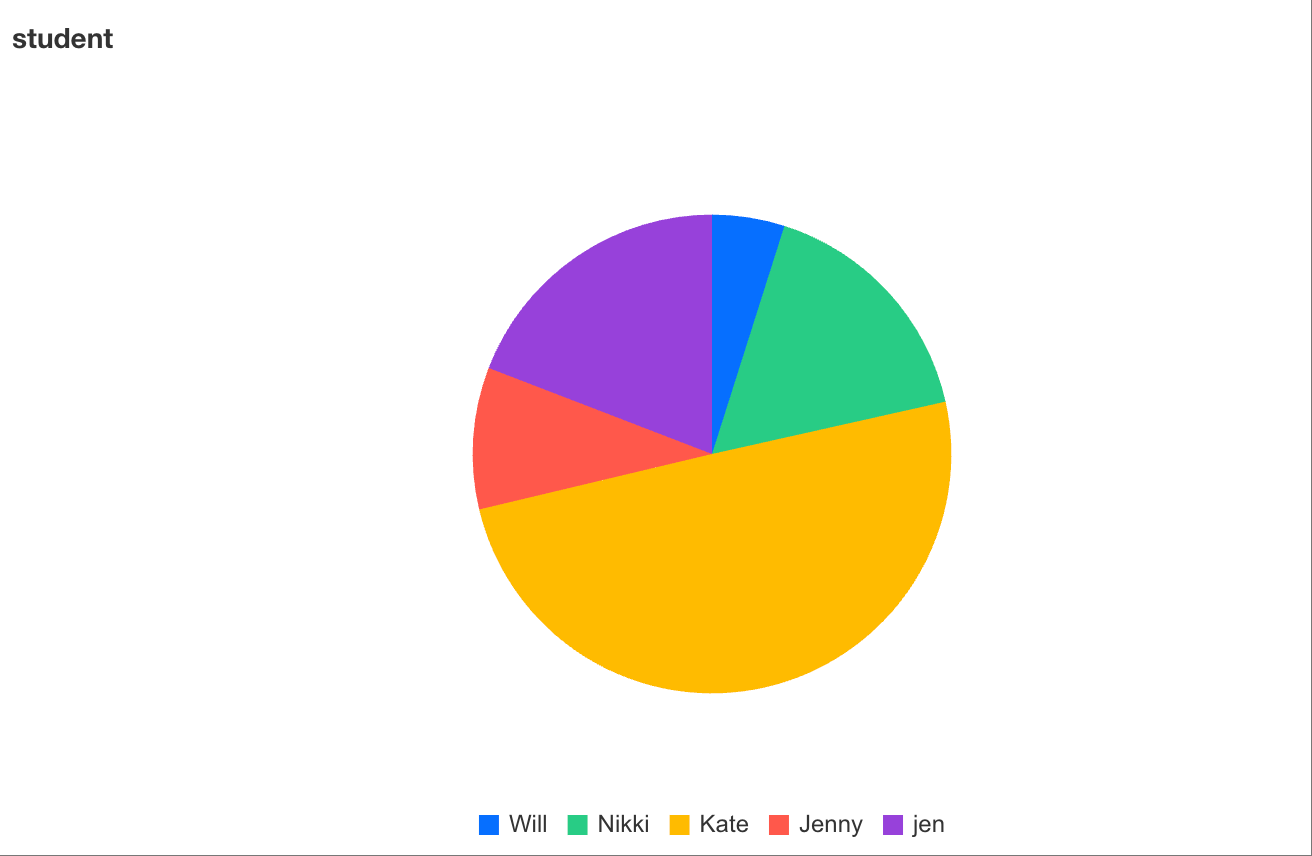 Drag "student" from the data list on the left to the dimension area and "score" to the metric area, and click Analyze to generate a pie chart.