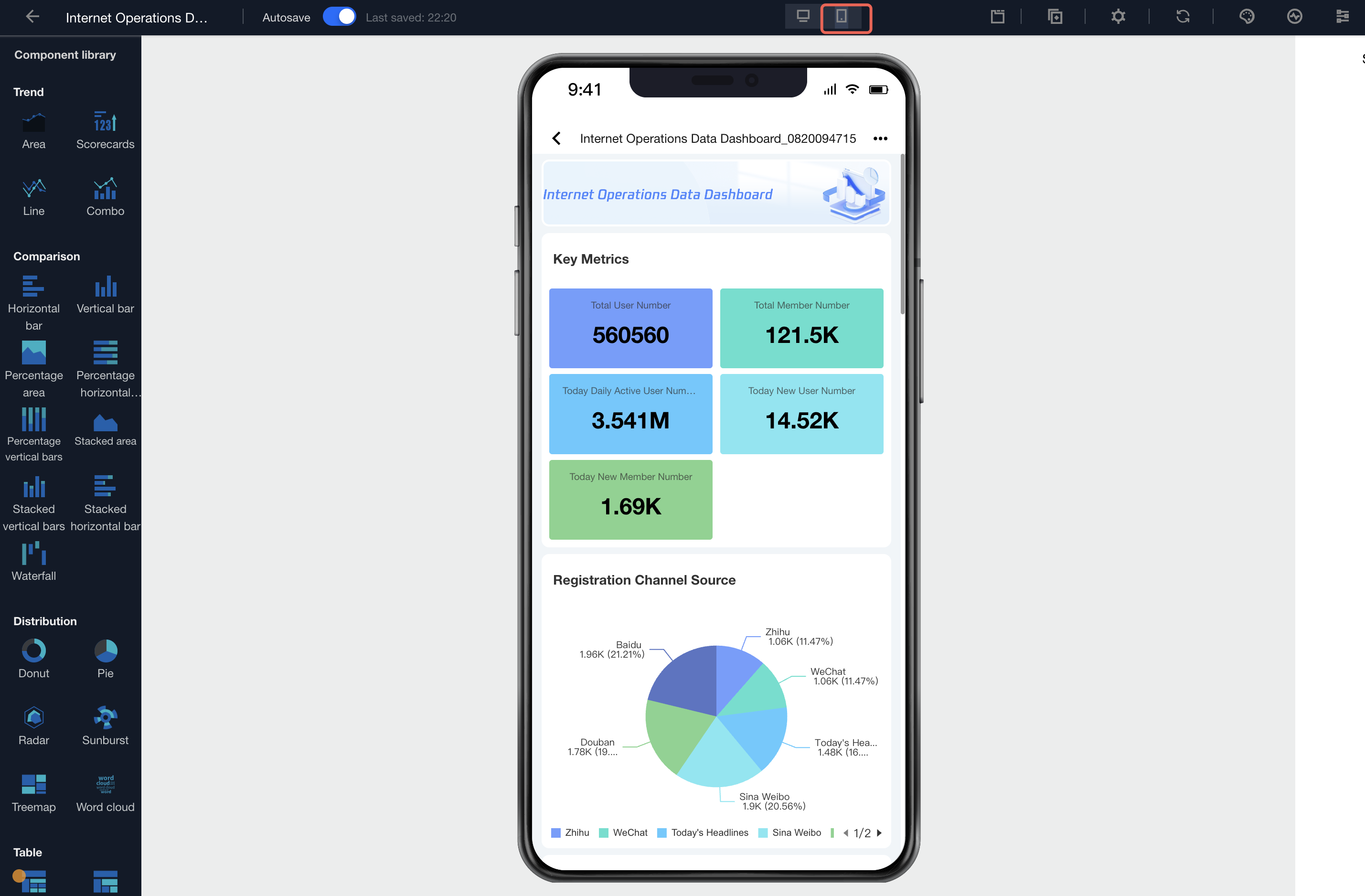 2. Theme feature is not supported. For example, if the chart style is set based on the theme on PC, it may cause error occurrence on mobile terminal. Temporarily set the PC to a black-on-white theme as much as possible. The theme feature will be updated in a recent update.