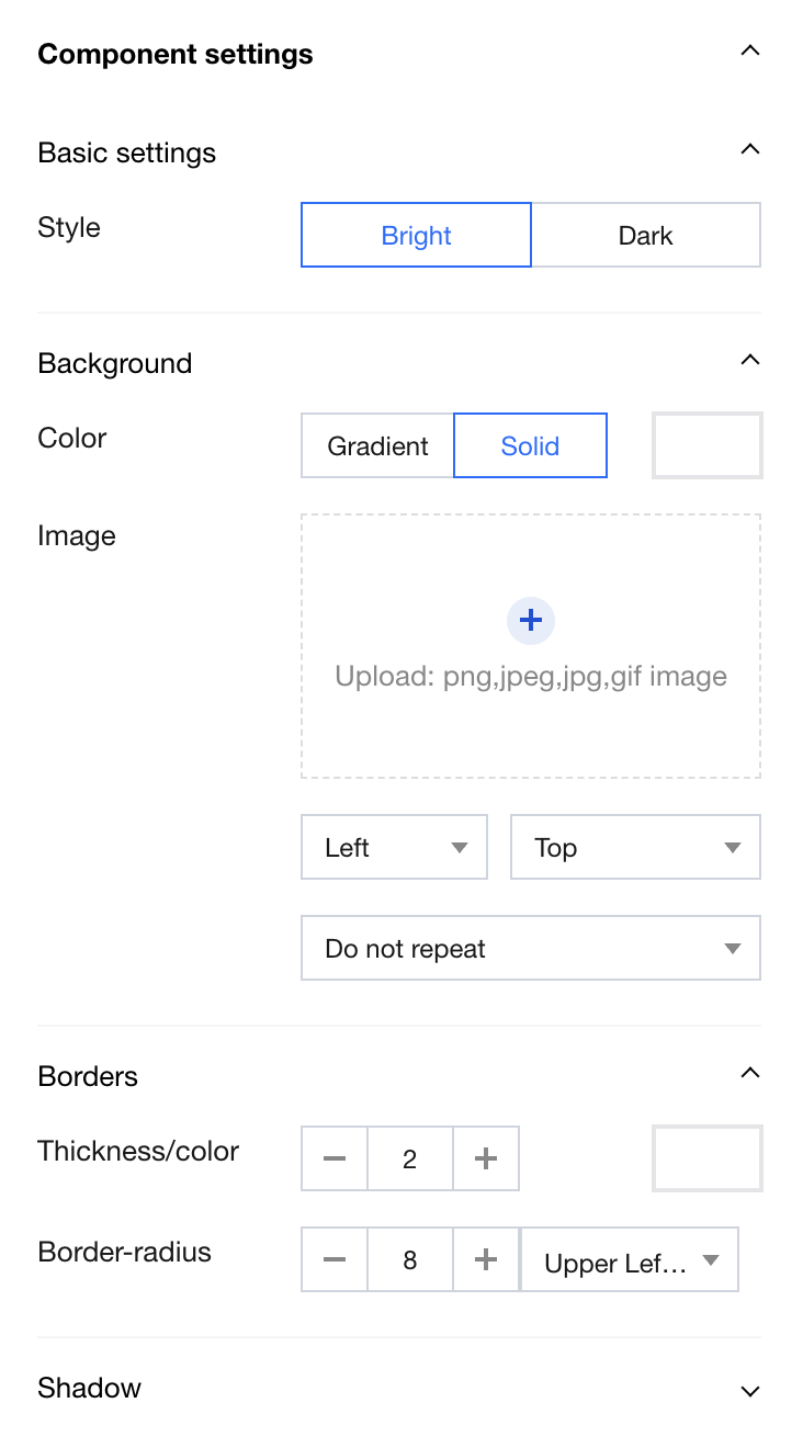 Component border - rounded border: 0-10, upper-left/lower-left/top right/lower-right