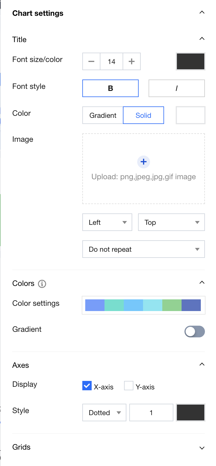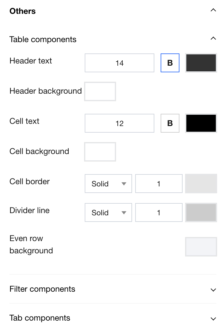 Through the theme style settings in Tencent Cloud Business Intelligence (BI) product, you can quickly set the theme style and style setting of data reports, including page settings, component settings, and chart settings.