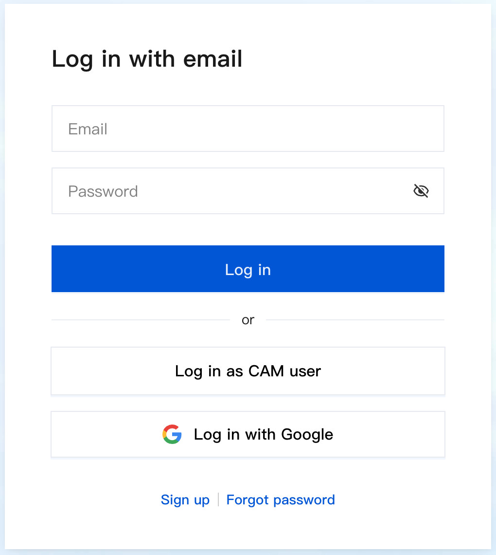 Cloud Native Build supports login via mailbox or Tencent Cloud account. Unregistered users must complete account registration first.