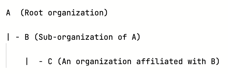 So user-1 has admin permission in A, B, and C, since sub-organizations or repositories inherit parent members, therefore user-1 also has permission in B and C.