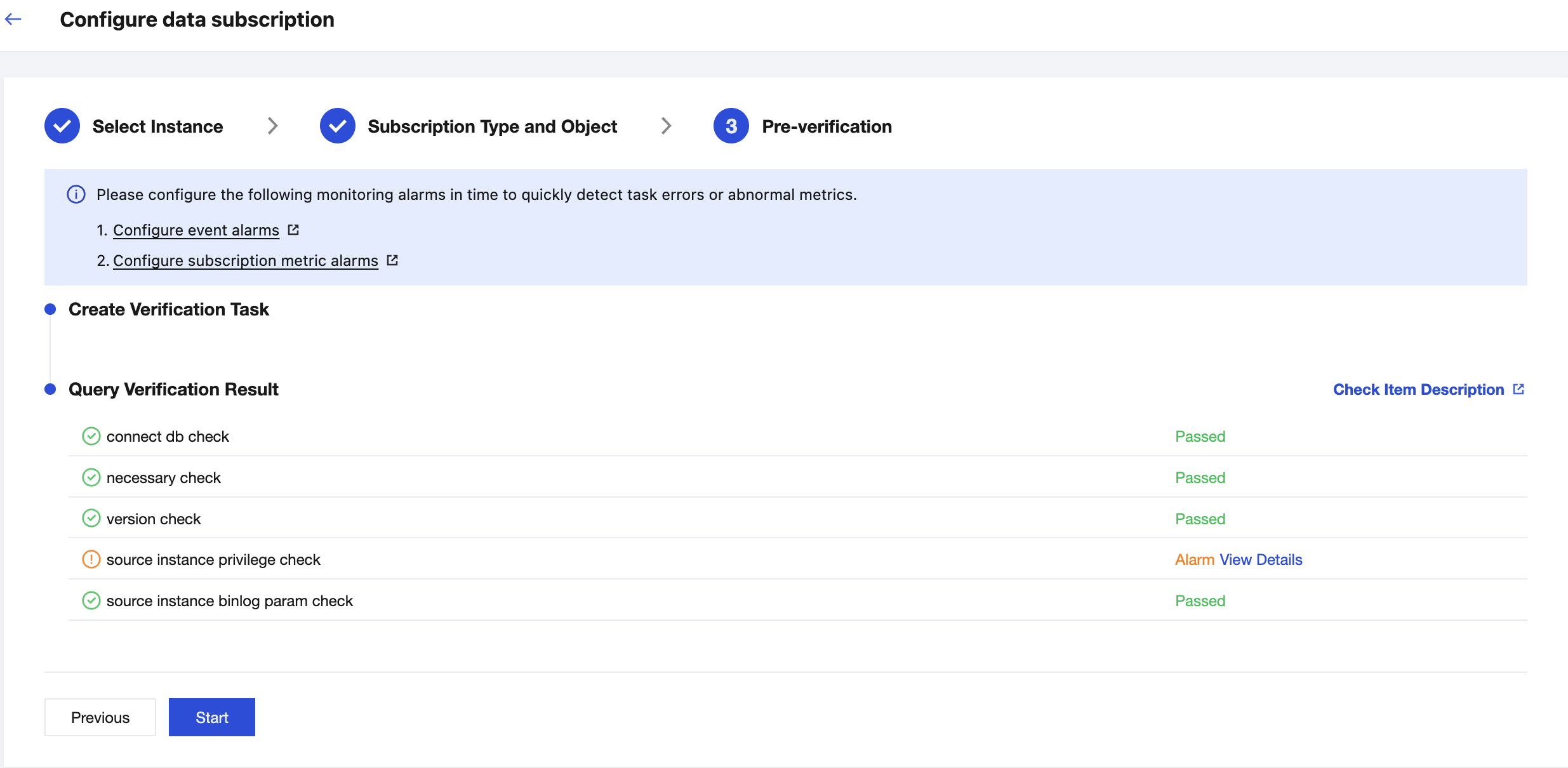 CREATE TABLE ... AS SELECT ... syntax after Binlog is enabled. To restore it, contact technical support to disable the synchronization feature and restart the instance.REPLICATION CLIENT, REPLICATION SLAVE, PROCESS, and SELECT privileges on all objects.REPLICATION CLIENT, REPLICATION SLAVE, PROCESS, and SELECT privileges on all objects.