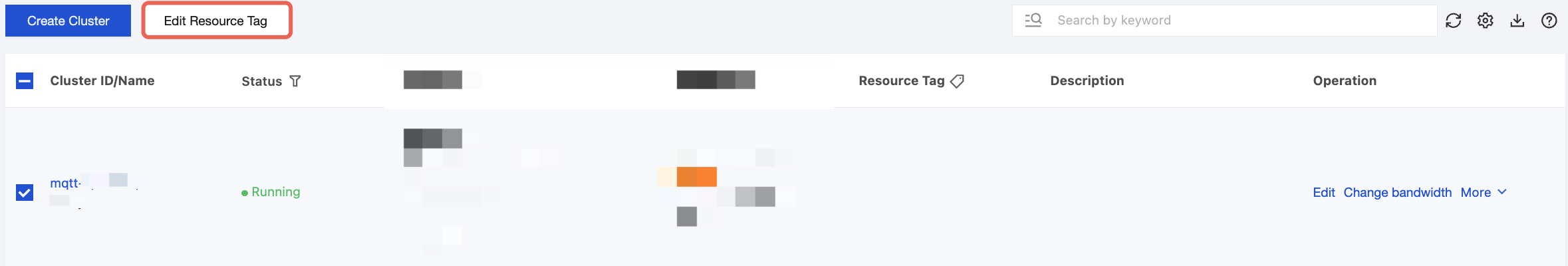 2. Select the target cluster, click Edit Resource Tag in the upper left corner, and bind the resource tag to the cluster.