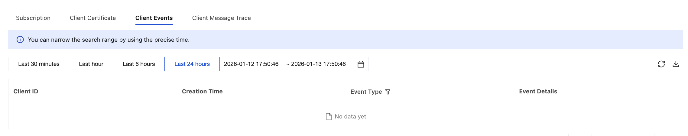 pending_activation | Certificate is inactive | Activate the certificate. The certificate has been registered on the platform but has not yet been activated. Go to the console, locate the certificate, and complete the activation process to allow it to establish connections. |