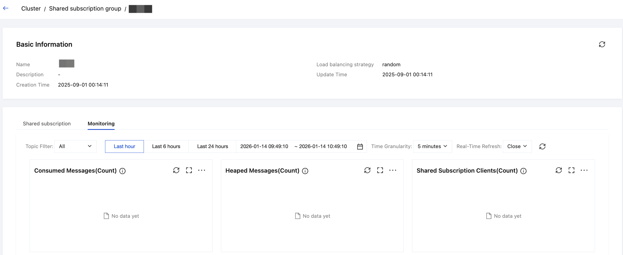 2. Go to Cluster > Shared Subscription Group Management and choose the specified shared subscription group.