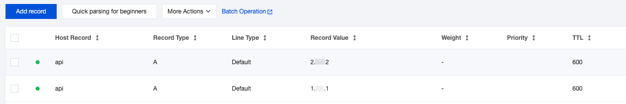 3. In Record Management page, you can view the records configured for the target domain. Refer to the following illustration: