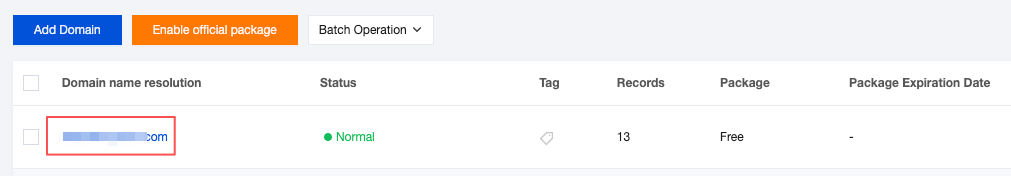 2. On Authoritative Resolution page, select the target domain and click the domain name to go to the Record Management page.