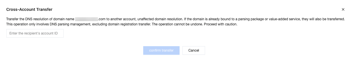 You can log in to the DNSPod console and then go to the Account Center to view the account ID. 5. Click confirm transfer to complete the transfer successfully.