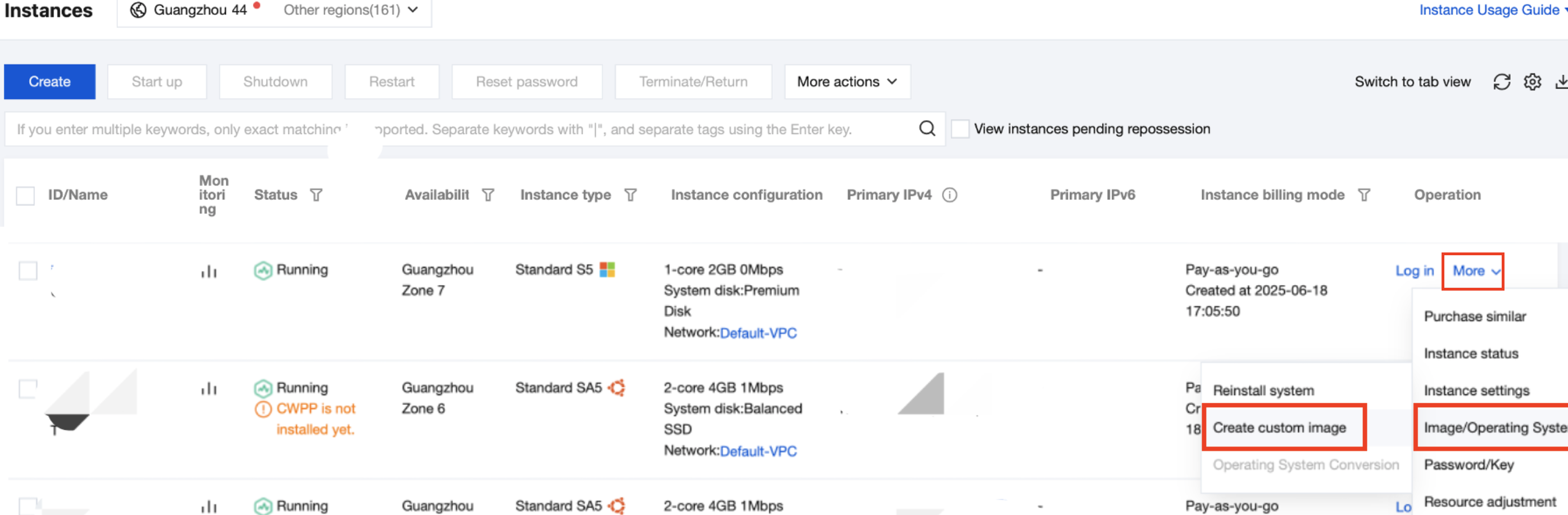 You can click Image on the left sidebar to view the creation progress in the Image page. Use the custom image to create an instance (optional)