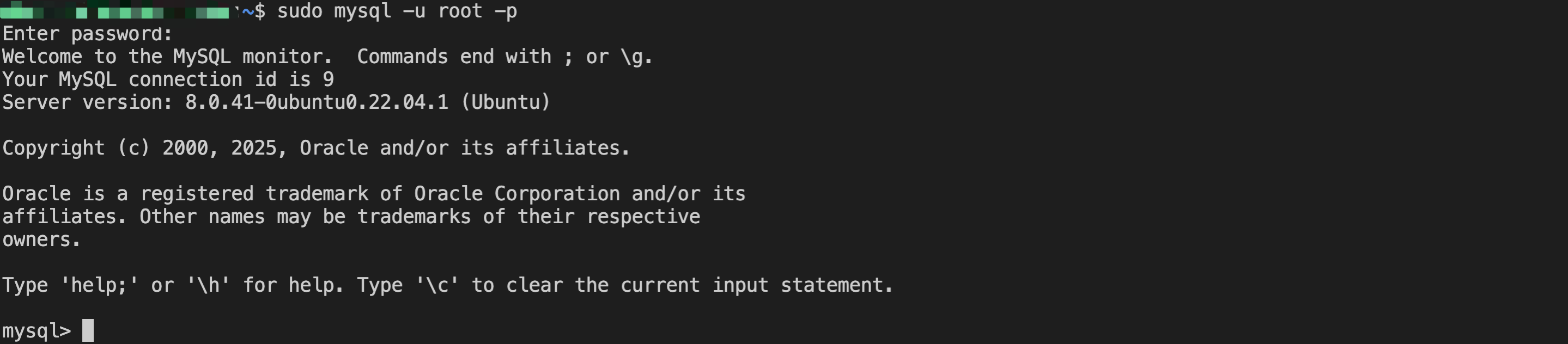 mysql Ver 8.0.41-0ubuntu0.22.04.1 for Linux on x86_64 ((Ubuntu))