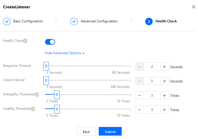 Check Interval | Interval between two health checks. Value range: 5-300 seconds. Default value: 5s. | 5s |