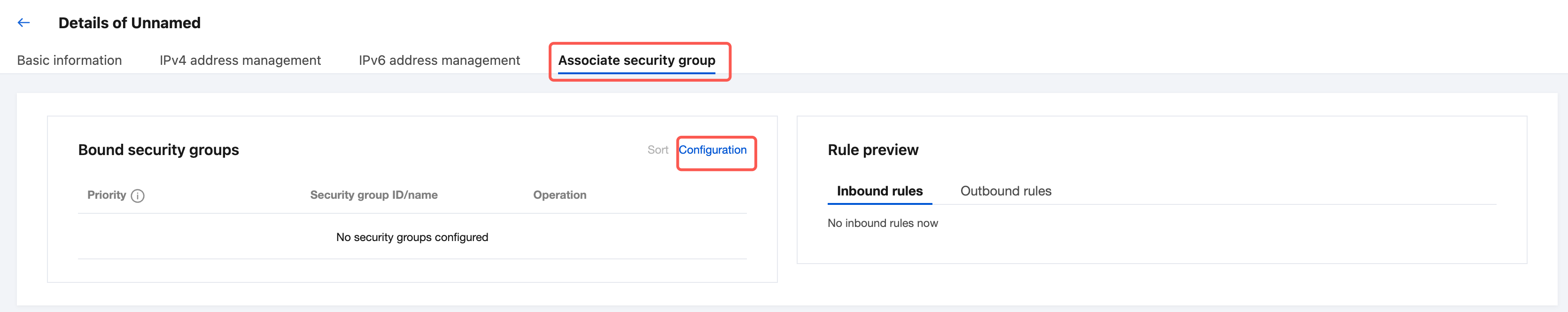 Before binding or unbinding a security group, please ensure the security group rule meet your business requirements to avoid network interruptions caused by the non-compliant security group rule.