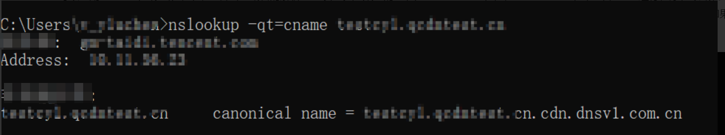 nslookup or dig command. Assume that you have added www.test.com. If you use Windows, open the command prompt and run the nslookup -qt=cname www.test.com command. Check the CNAME resolution record in the output. If the CNAME resolution record is the same as the CNAME address that is provided by CDN, the CDN acceleration service has taken effect for the domain name.
