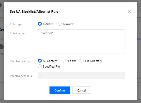 CDN checks the User-Agent field in HTTP request headers based on the rules to allow or reject user access requests.