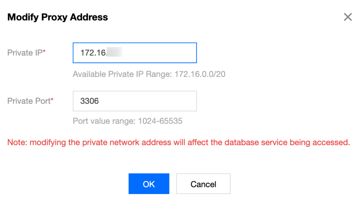 Network Selection | Database proxy only supports VPC. You can choose to automatically assign or specify an address. |